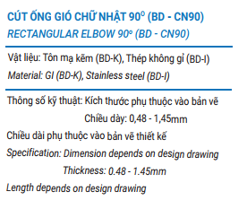 Trong số những phụ kiện ống gió thì cút ống gió vuông 90 độ là sản phẩm không thể thiếu. Đây là loại ống dùng trong chuyển hướng ống gió, được nhiều chủ công trình yêu thích